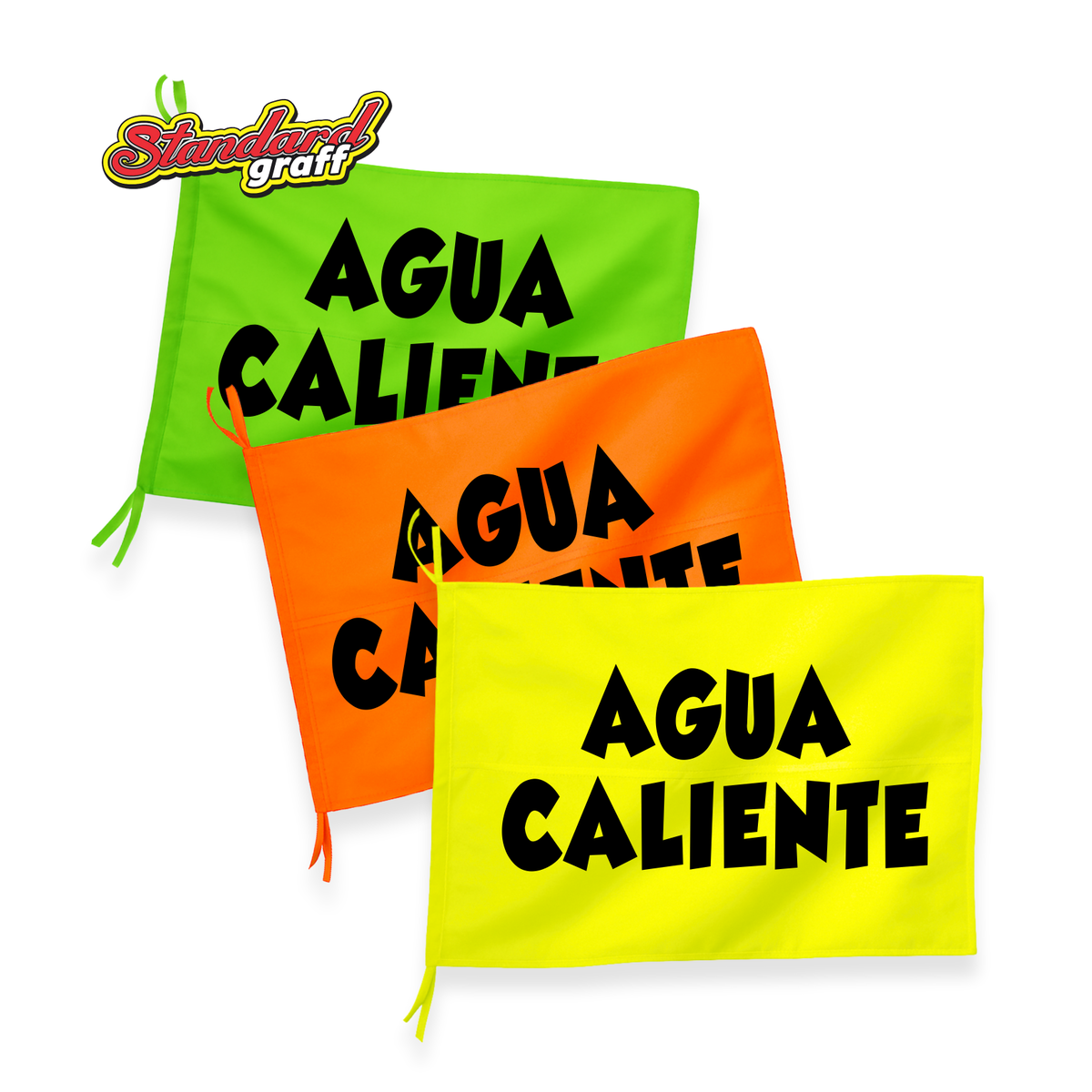 Bandera fluo (70×47cm) para comercio "AGUA CALIENTE" - cod:01