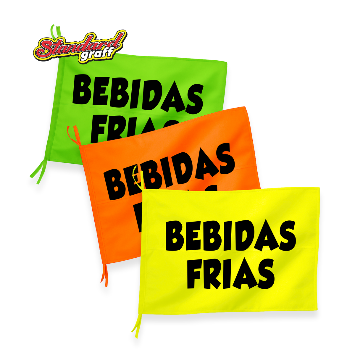 Bandera fluo (70×47cm) para comercio "BEBIDAS FRIAS" - cod:09
