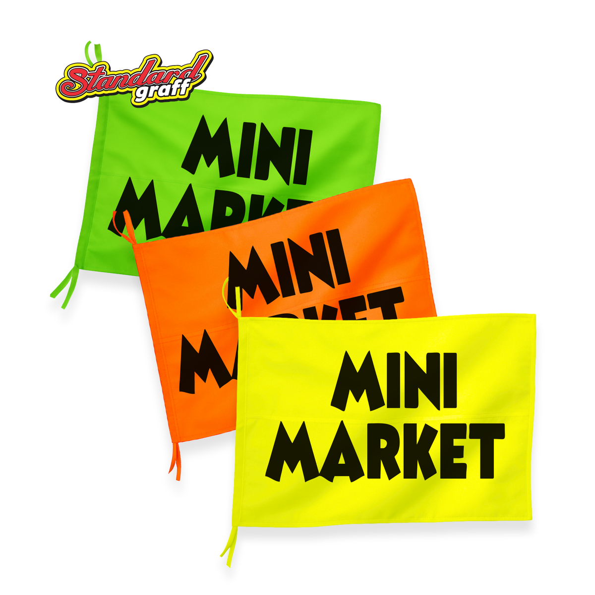Bandera fluo (70x47cm) para comercio "MINI MARKET" - cod:67