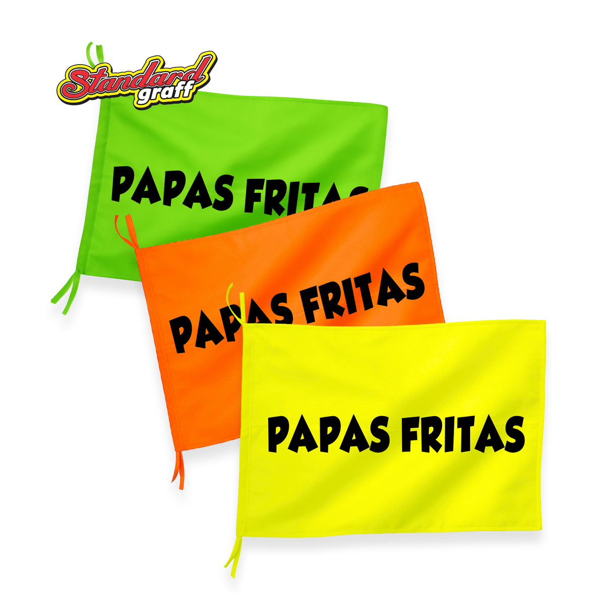 ¿Querés que tu local se vea desde la otra cuadra? Esta bandera fluor es la solución. Disponible en verde, amarillo o naranja, con letras grandes y bien llamativas que hacen que nadie pase de largo.